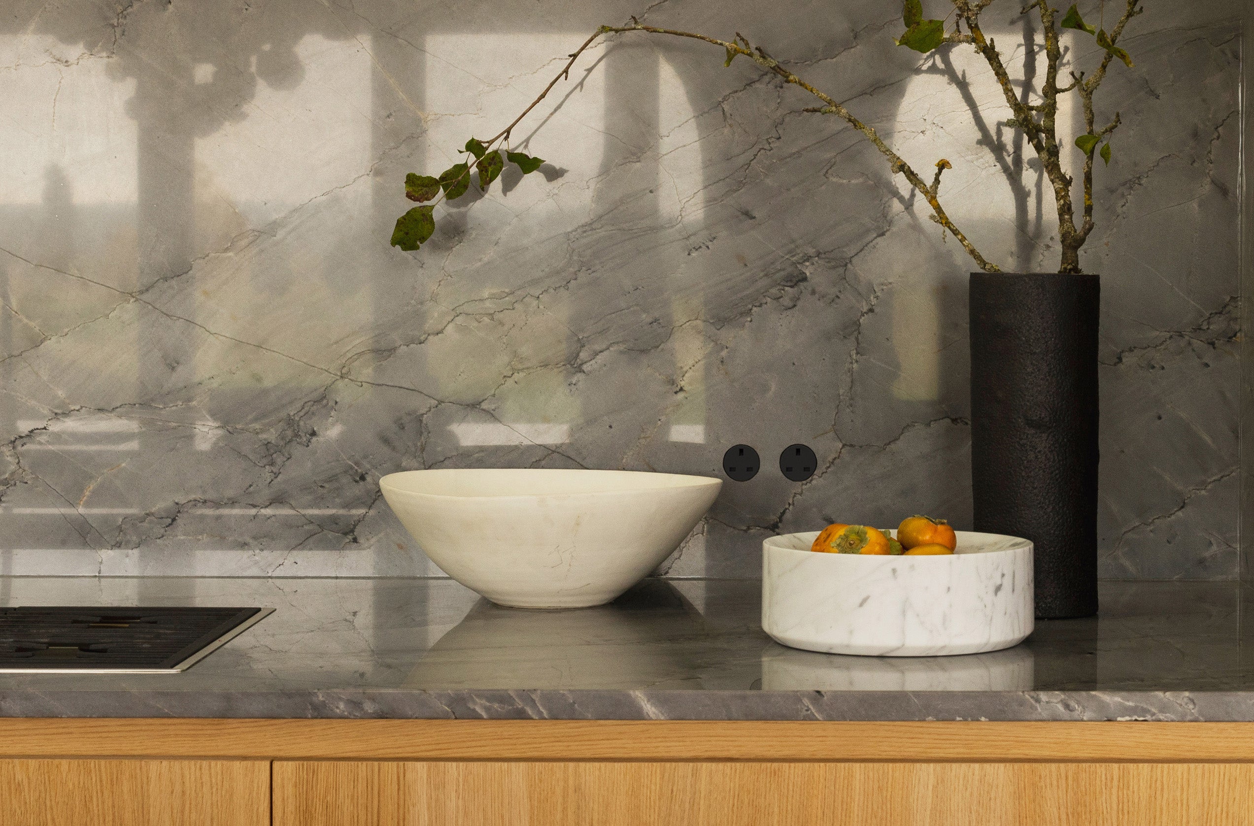 The patented 22 System uses standard backboxes. It flush-mounts in stone, millwork, tile, glass, concrete, or any other surface, or can be plastered directly into plasterboard.